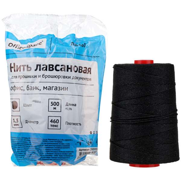 —Нить для прошивки документов 'OfficeSpace', d1,5 мм , 500 м, цвет черный, 295937