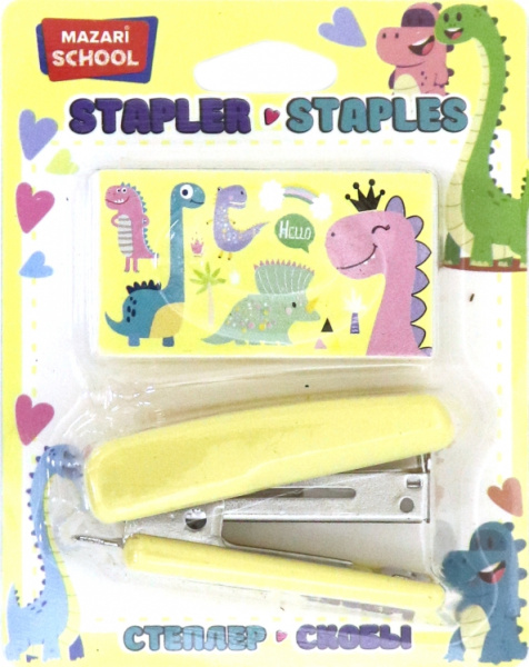 Набор- степлер № 10 и скобы (500 шт), 6 дизайнов, блистерная упаковка ; картонный дисплей, M-3421