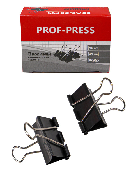 Зажим для бумаги 41 мм Prof-Press 12 шт в упаковке черный 3К-4169