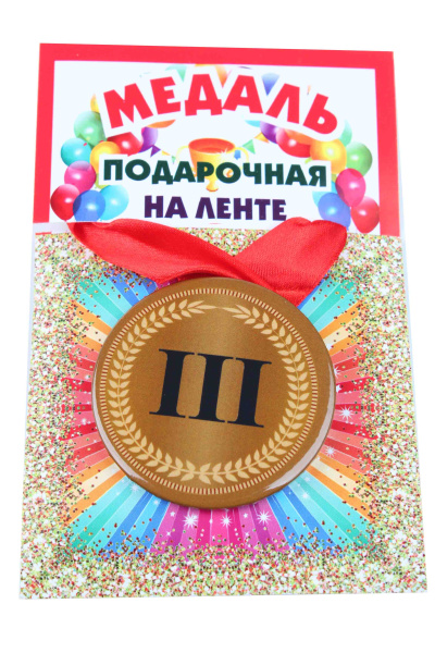 —Медаль 3 место пластиковая, d-5,5 см., лента красная