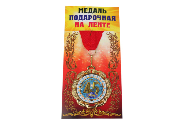 —Медаль подарочная на ленте металлическая Сапфировая свадьба 45 лет D=6,5 см.