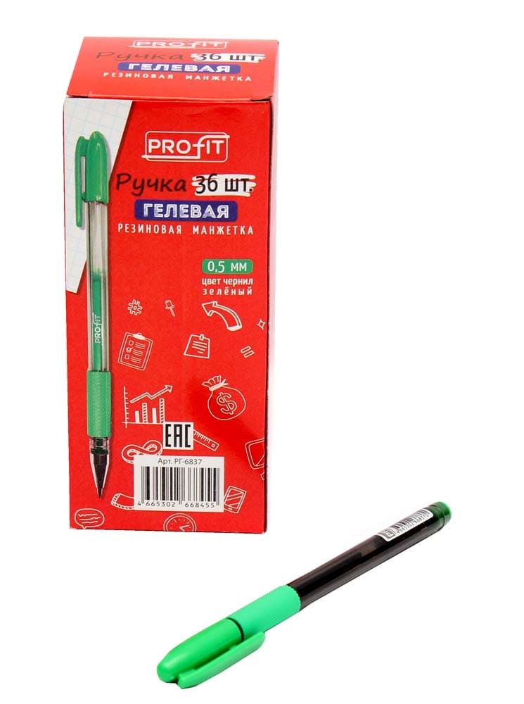 —Ручка гелевая Profit, зелёная, 0.5 мм., тонир. корпус, грип, РГ-6837