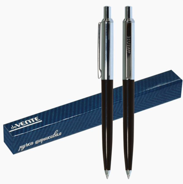 Ручка шариковая подарочная 'deVENTE' d=1 мм, черным корпусом и хромированными элементами, сменный стержень, в подарочной коробке, синие чернила