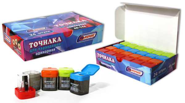 —Точилка одинарная с контейнером с крышкой 25х34 мм , ASMAR , цвета ссорти, AR-944
