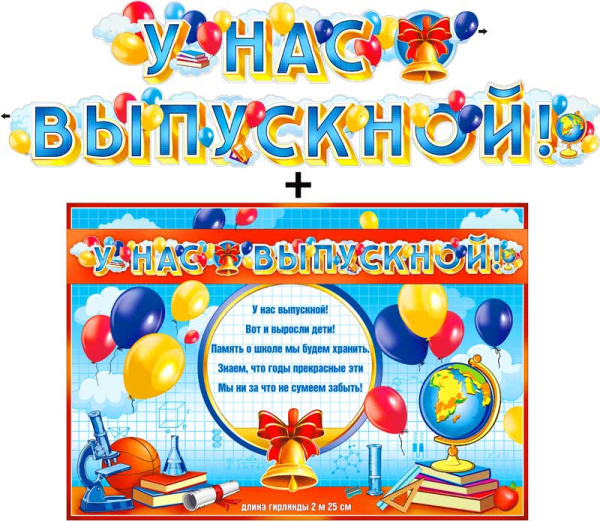 —Гирлянда 'У нас выпускной!' + плакат, с блестками, 700-519-Т