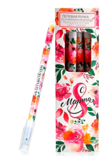 —Ручка пиши стирай синяя, гелевая 0,5 мм с колпачком 'С 8 Марта!', 9227085