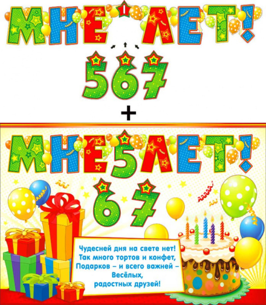 Гирлянда ФДА ' Мне 5,6,7 года!' с подвесными элементами., 700-386-Т