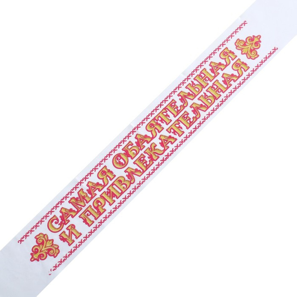 Лента атлас 3D Самая обаятельная и привлекательная 'Белая'