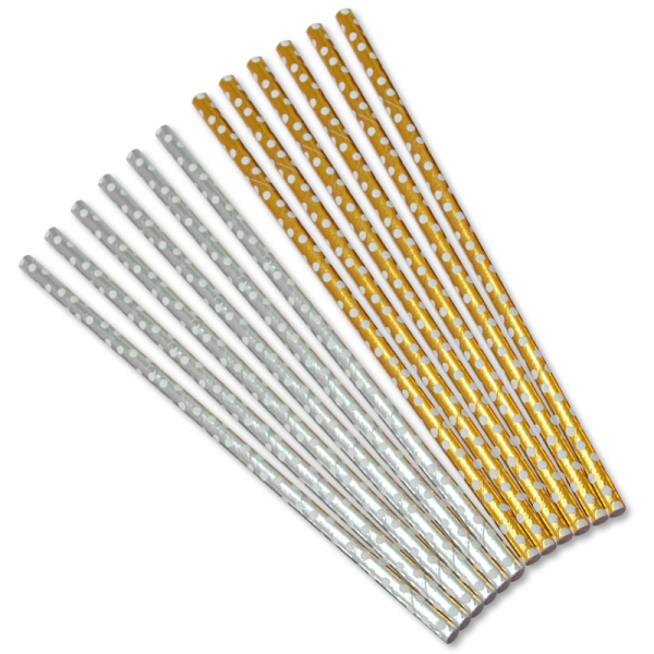 Трубочки для коктейлей, Белые точки, Золото;Серебро, (12 шт;уп), 625007