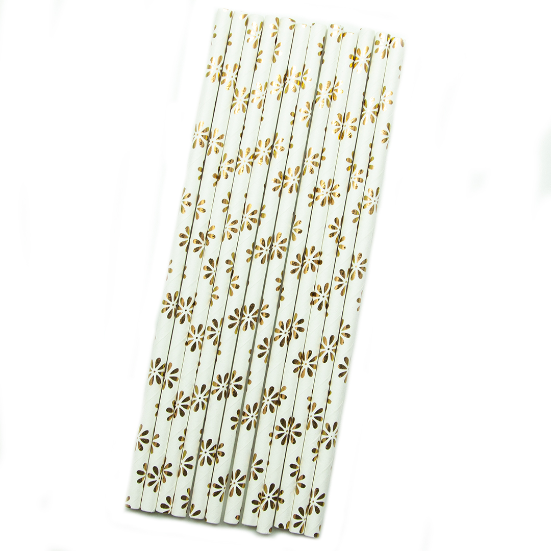 Трубочки для коктейлей, Золотые цветы , Белый , Металлик, (12 шт;уп), 615235