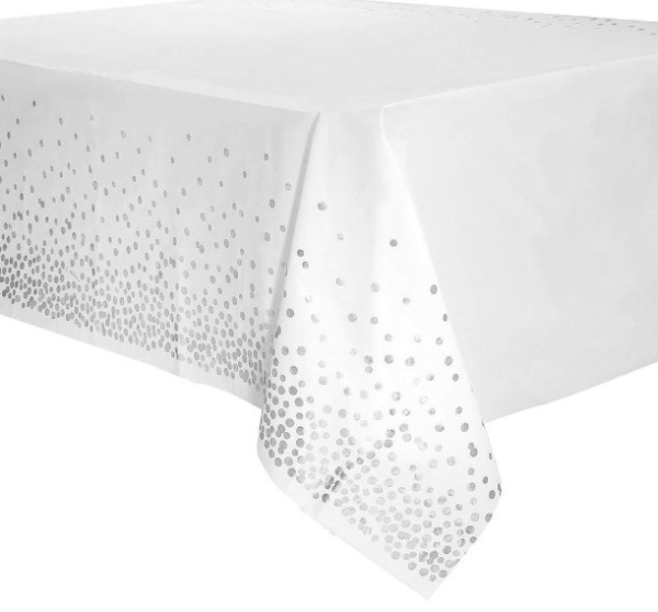 Скатерть 'Белая. Серебрянные круги' 180х110 см.