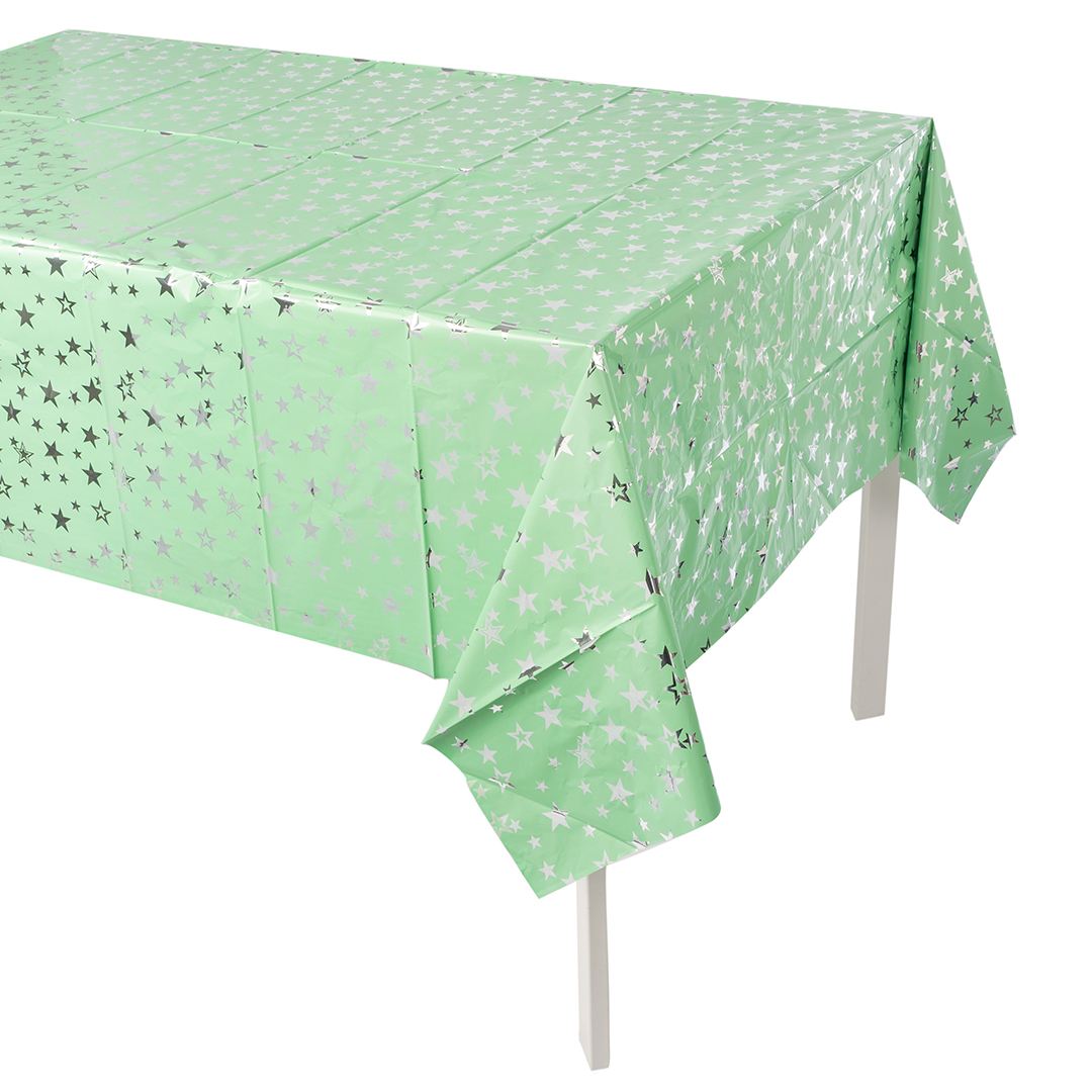 —Скатерть одноразовая, Звезды Люкс, Мятный;Серебро, Металлик, 137х183 см, 6233582