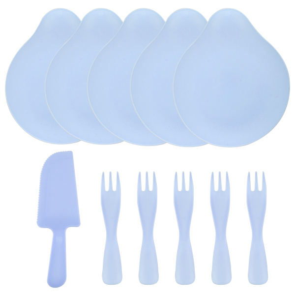 Десертный набор'Где тортик.', тарелки, вилки, нож, голубой, (11 шт;уп), 6232450