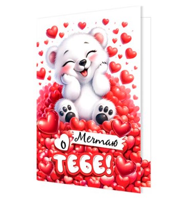 Открытка ' Мир открыток ' 2-46 Мечтаю о тебе! 251х194 мм, рельеф, блестки, текст, 2-46-14176А