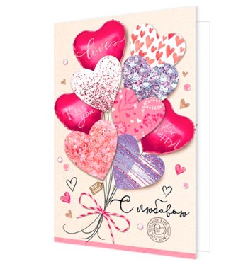—Открытка ' Мир открыток ' 2-46 С любовью, 251х194 мм, рельеф, блестки, текст, 2-46-14177А