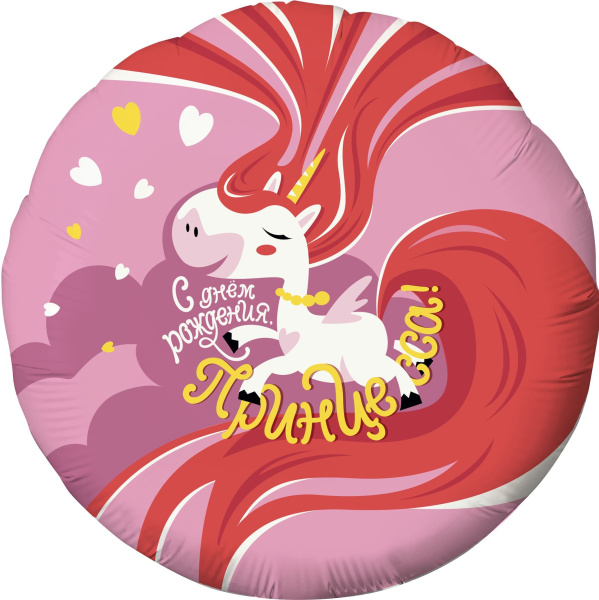 —Шар фольга Agura (18'';46 см) Круг, С Днем Рождения, Принцесса! (единорог), 1 шт., 756560