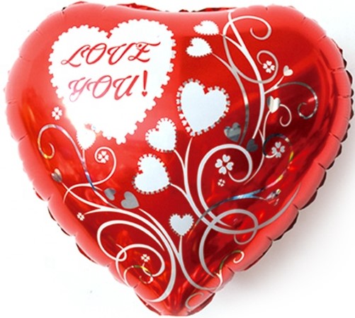 Шар фольга 'Сердце' 18;46 см.,'Love You', красный, 180765