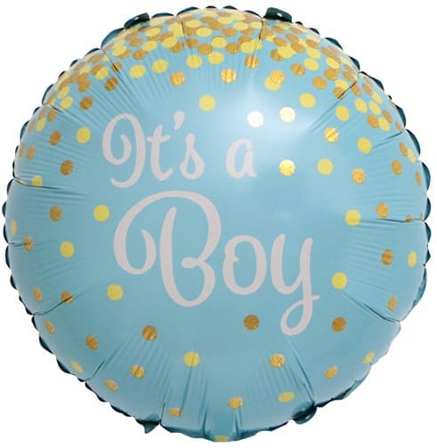 —Шар фольга Agura (18'';46 см) Круг, С Рождением Мальчика (золотое конфетти), Голубой, 1 шт. 15491