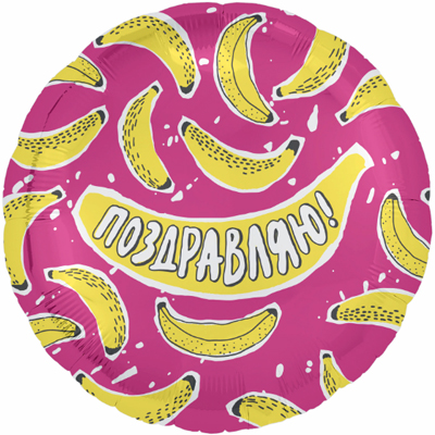 —Шар фольга круглый Agura 'Поздравляю (бананы)', 754375