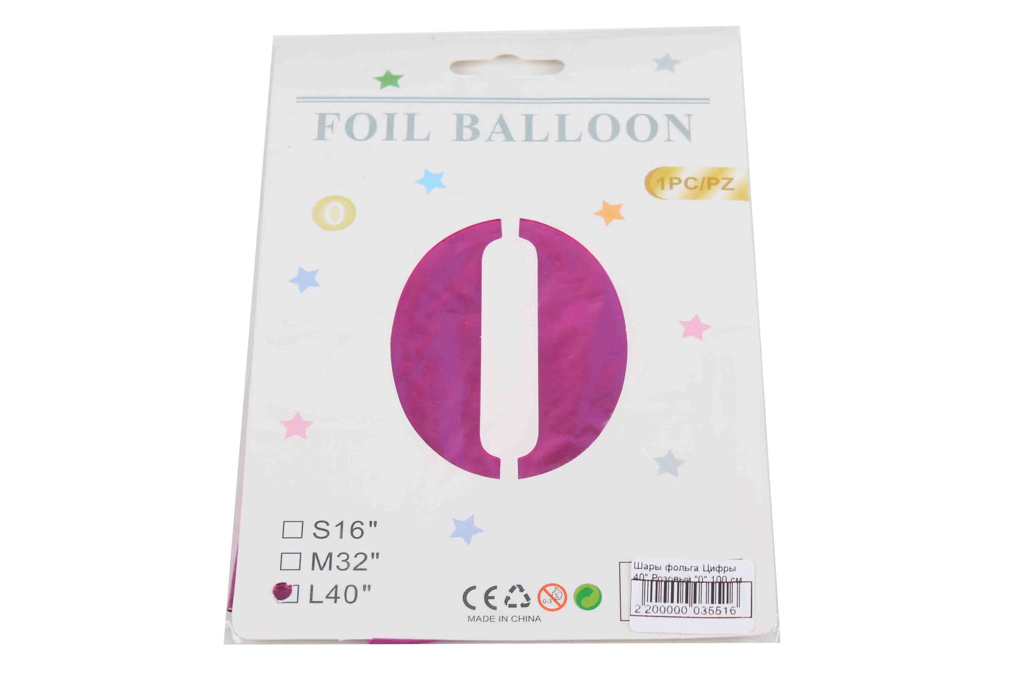 —Шары фольга Цифры 40' Розовый '0' 100 см.