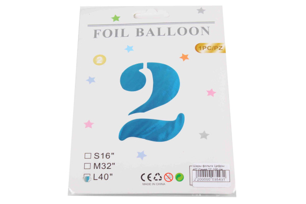 —Шары фольга Цифры 40' Синий '2' 100 см.