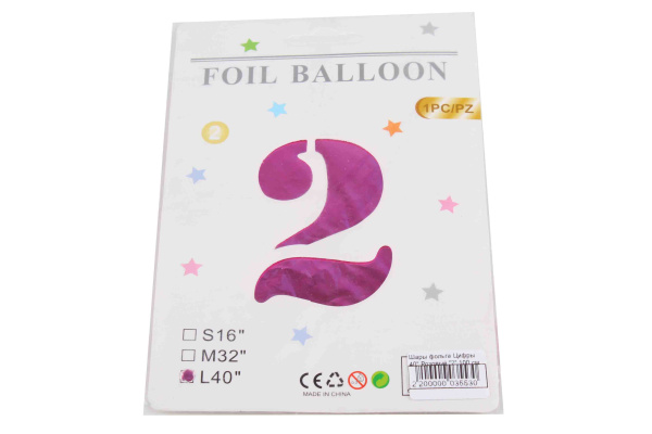 —Шары фольга Цифры 40' Розовый '2' 100 см.