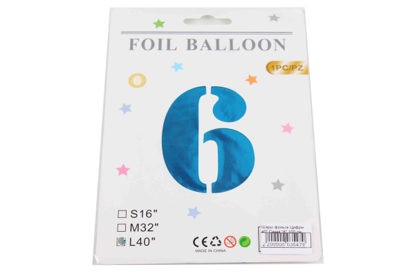 Шары фольга Цифры 40' Синий '6' 100 см.
