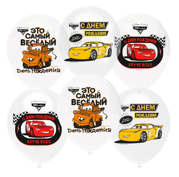 —Шар 12;30 см Тачки, С днем рождения, Кристалл 25 шт 812234