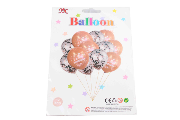 —Набор шаров 'С днем рождения! Розовое золото, белый латекс и конфетти', 12 шт. в наборе, 965