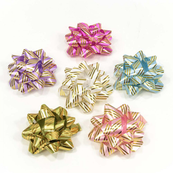 —Бант-звезда OMG 'Золотая полоска' 6,3 см, 12 шт, на липучке, ассорти, OM500566-63