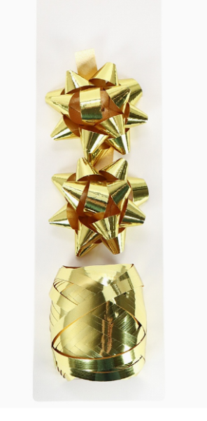 Набор для оформления подарков Золотой, 2 банта+лента 5 мм х 10 м, БЛ-0375
