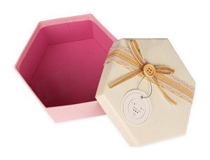 Коробка подарочная с бантом Miland "Радостные моменты, роз." 19х17х9 см., шестиуг.(Серия 3в1), 1320