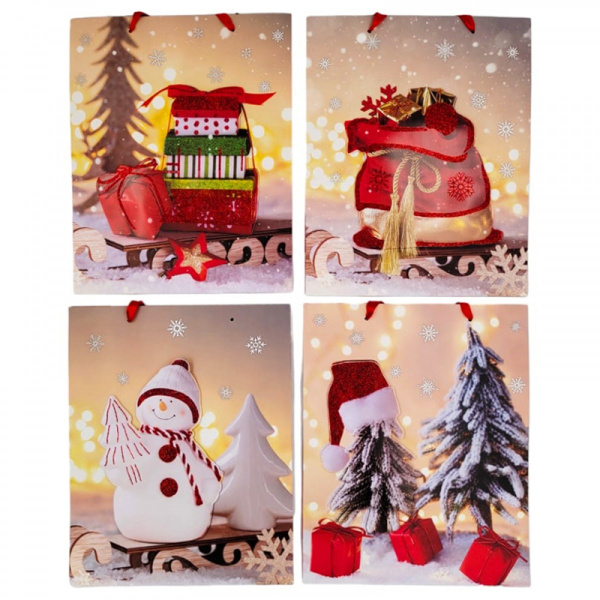 —Пакет НОВОГОДНИЙ глиттер,3D 26х32х10 см, WB7908M