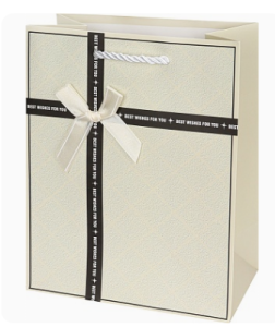 —Пакет подарочный с мат. лам. и бантом 18~23~10 см (М), Пожелания, белый, ППК-2202