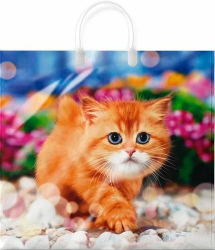 —Пакет ПЭ с пластмассовыми ручками 38х35+10 (90) Интерпак ламинация (Пушок), ПЛР55213