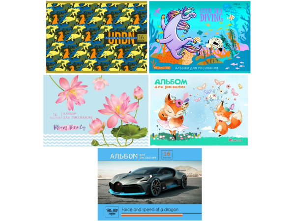 Альбом для рисования 16л., А4, ассорти
