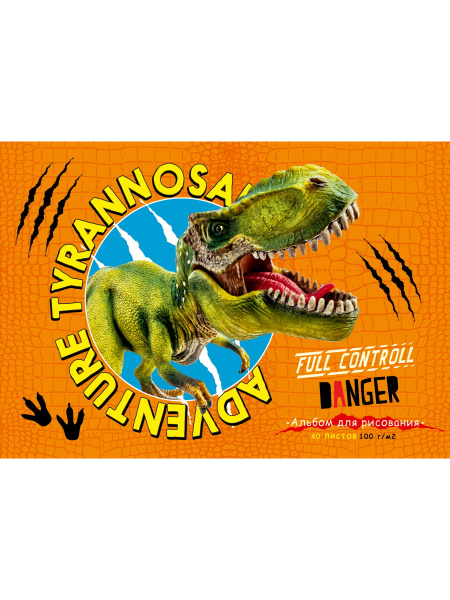 Альбом для рисования А4 40л. 'БОЛЬШОЙ ТИРАННОЗАВР', с жесткой подложкой,твин-лак, 40-7005