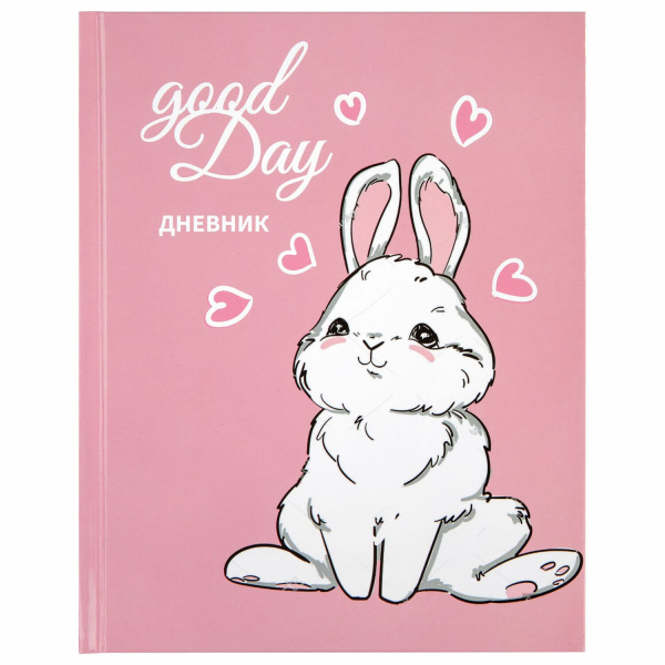 Дневник 1-4 класс 48 л., твердый, ЮНЛАНДИЯ, глянцевая ламинация, с подсказом, "Bunny", 106348