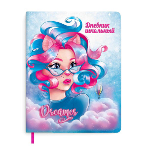 Дневник школьный 'Мечтательница', А5 , кожзам , твёрдый переплёт, 63124
