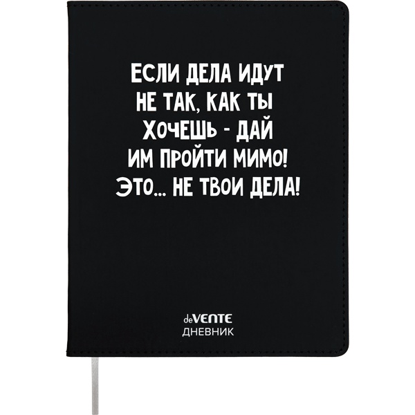 Дневник 'deVENTE. Не твои дела!' универсальный блок, 48 листов, белая бумага 80 г;м², печать в 1 краску, гибкая обложка из искусственной кожи, шелкография, отстрочка, 1 ляссе