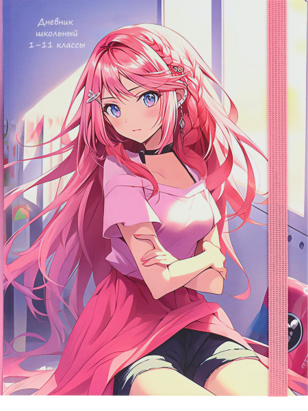 Дневник школьный 40л. ДЕВУШКА С РОЗОВЫМИ ВОЛОСАМИ, Д40-3418