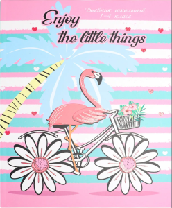 —Дневник школьный 48 л. Фламинго на велосипеде , 1-4 классы , глиттер,перепл, Д48-7854