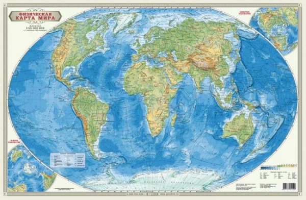 —Карта настенная Геодом 'Мир физический', бумага, 58 х 38 см., 1657