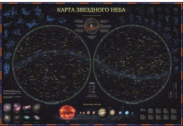 —Карта настенная Глобен "Звёздное небо, планеты", бумага, (без ламинации 101 х 69 см)., КН002