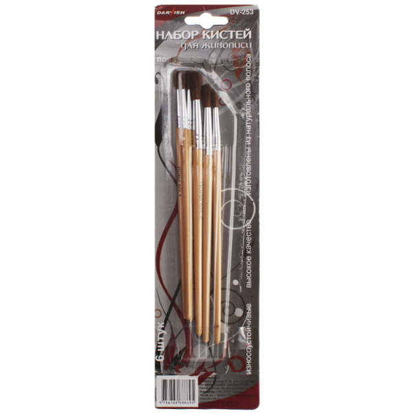 —Кисти в наборе Darvish Пони №1,2,3,4,5,6 круглая, картон. блистер, европодвес, DV-253