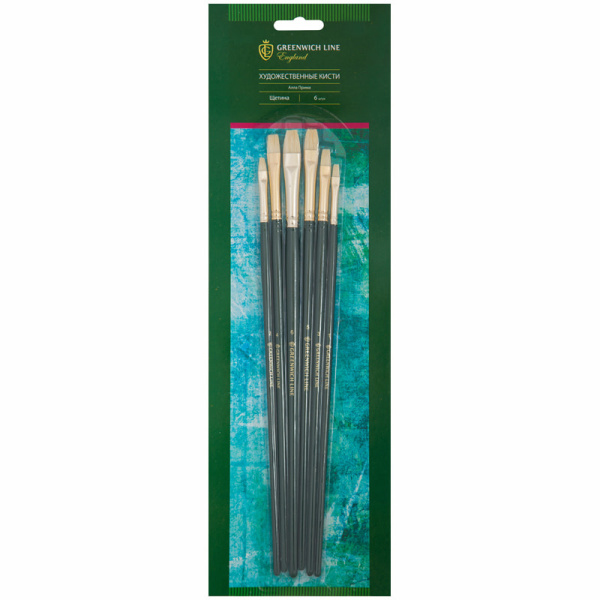 Кисти худож. в наборе Greenwich Line "Алла Прима" Щетина № 1-6, плоские, европодвес, АВ_15908
