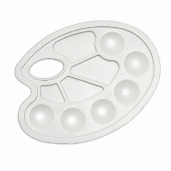 —Палитра для рисования ПИФАГОР белая, овальная, 6 ячеек для красок и 4 ячейки для смешивания, 227805
