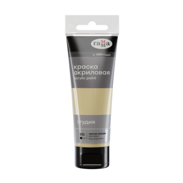 —Краска акриловая художественная Гамма 'Студия' желтая полевая, 75мл, 280220151