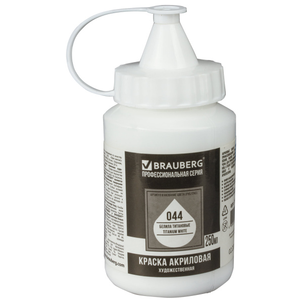 Акриловая краска Brauberg, белила титановые, флакон 250  мл., европодвес, 191072