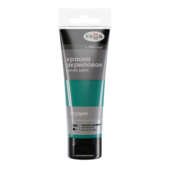Краска акриловая художественная Гамма 'Студия' зеленая изумрудная, 75 мл, 280220504